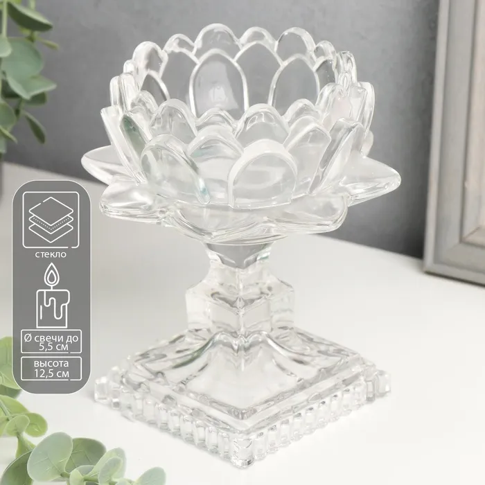 Стеклянный подсвечник на 1 свечу «Лотос», прозрачный, 12.5×12.3×12.3 см — Характеристики