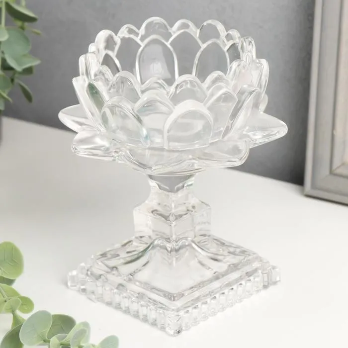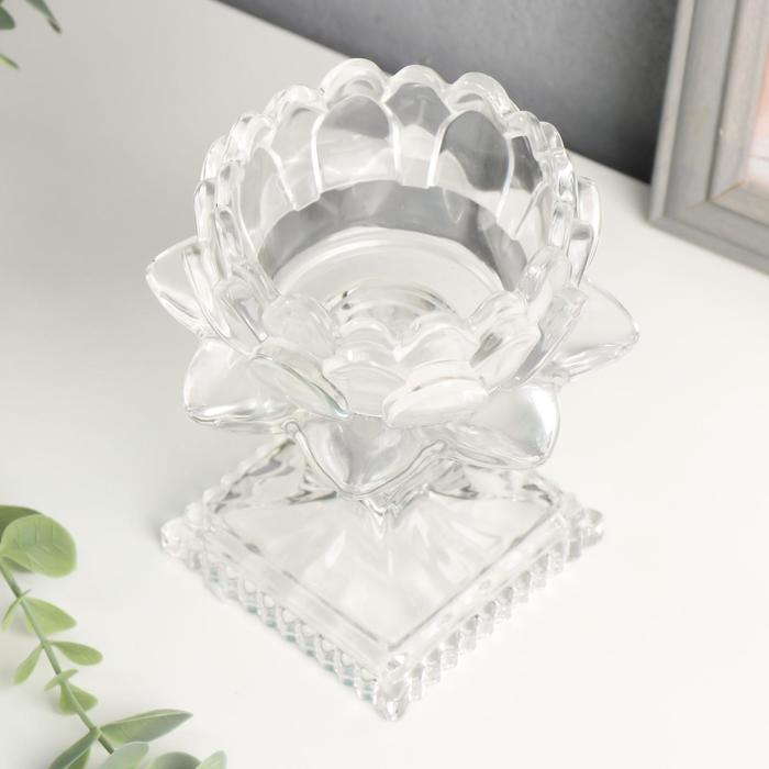 Стеклянный подсвечник на 1 свечу «Лотос», прозрачный, 12.5×12.3×12.3 см