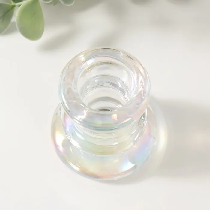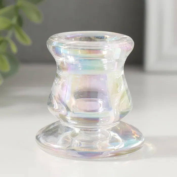 Стеклянный подсвечник на 1 свечу «Лучано», d=2.2 см, прозрачный голография, 5.5×5.2×5.3 см — Характеристики