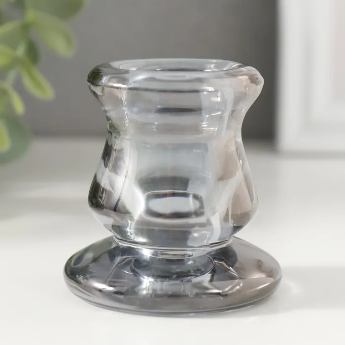 Стеклянный подсвечник на 1 свечу «Лучано», d=2.2 см, прозрачный серый, 5.5×5.2×5.3 см — Характеристики
