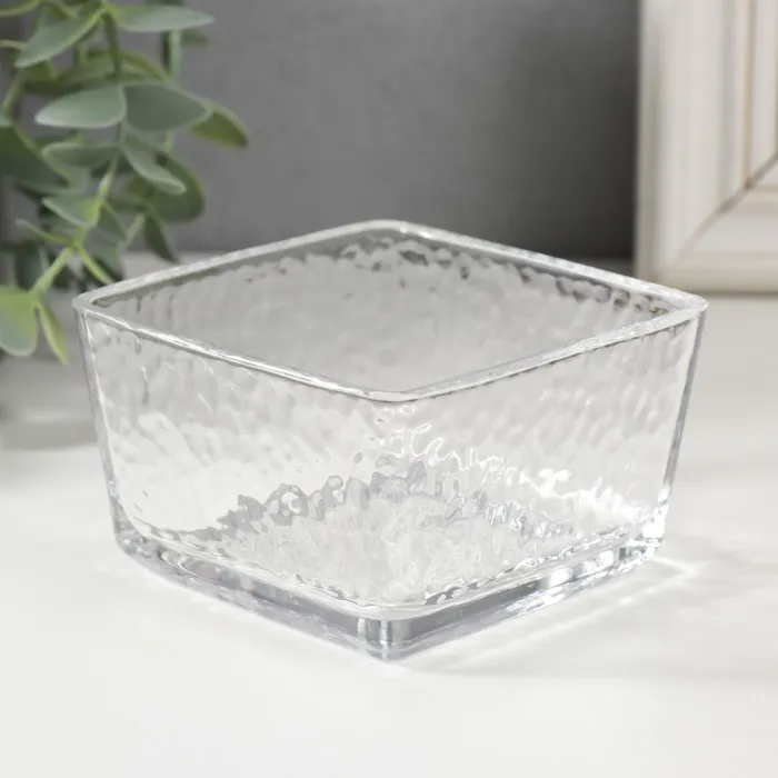 Стеклянный подсвечник на 1 свечу «Мятый квадрат», прозрачный, 9×9×5.5 см — Характеристики