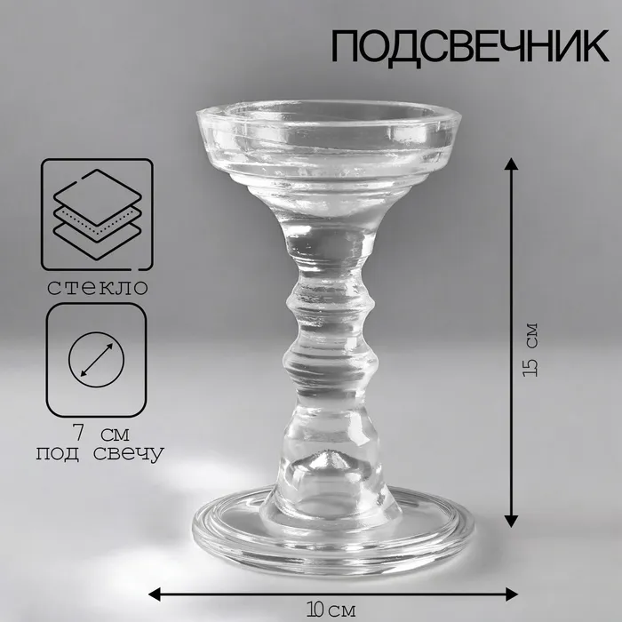 Стеклянный подсвечник на 1 свечу на 1 свечу «Стаканчик», прозрачный, 6.2×4.6×6.2 см — Характеристики