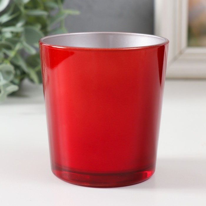 Стеклянный подсвечник на 1 свечу «Ода», 250 мл, красный с серебром, 8.4×7.9 см