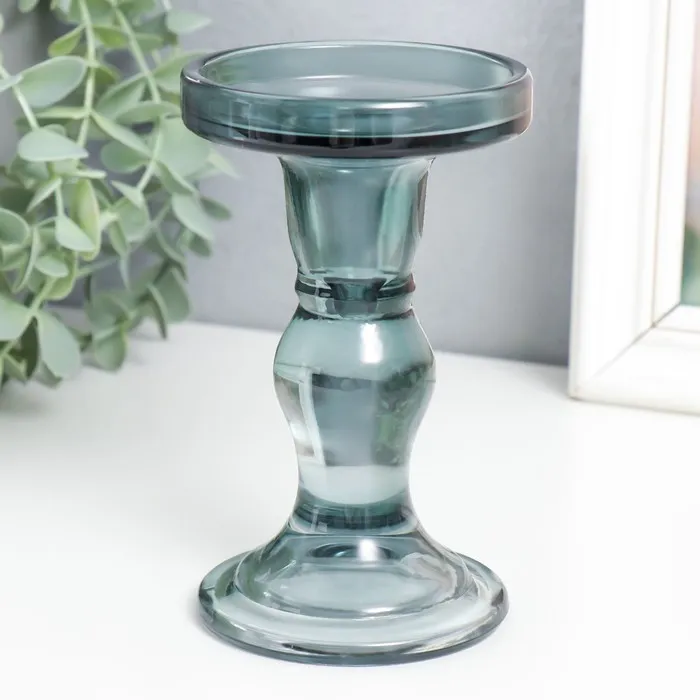 Стеклянный подсвечник на 1 свечу «Подиум», двухсторонний: d=2 см и 7 см, дымка, 8.5×8.5×14 см — Характеристики