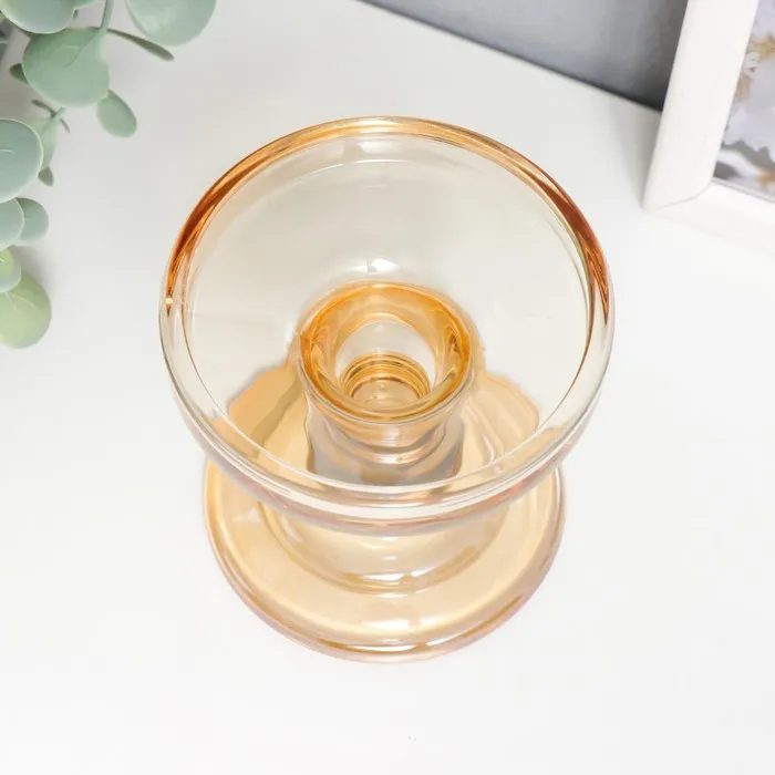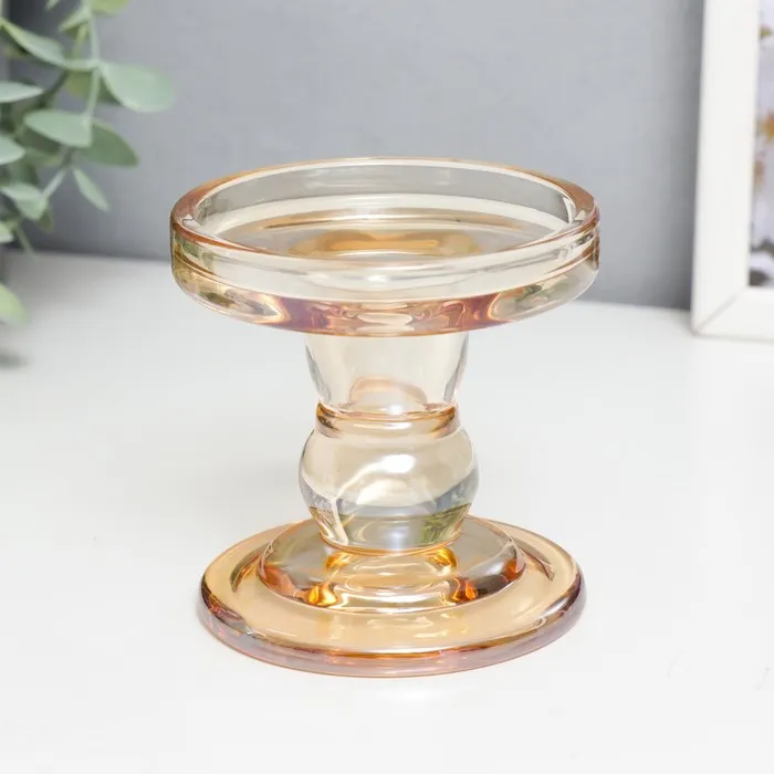 Стеклянный подсвечник на 1 свечу «Подиум», карамель, 8.5×8.5×8.5 см — Характеристики
