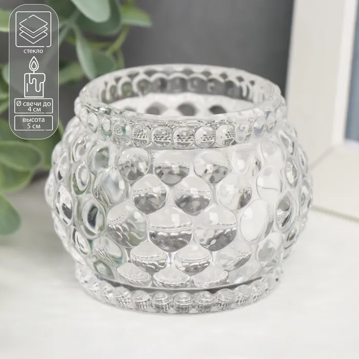 Стеклянный подсвечник на 1 свечу «Пузырьки на шаре», прозрачный, 5×6×6 см — Характеристики