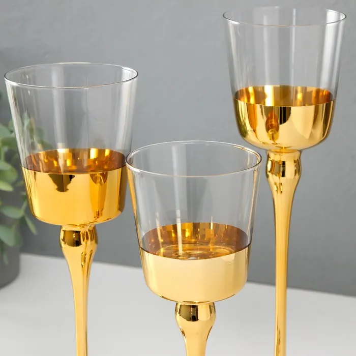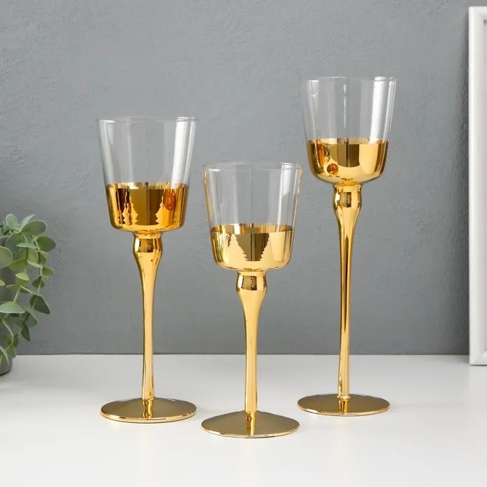 Стеклянный подсвечник на 1 свечу «Романтика свечей», набор 3 шт., золото, h=26 см, 23 см, 20 см — Характеристики