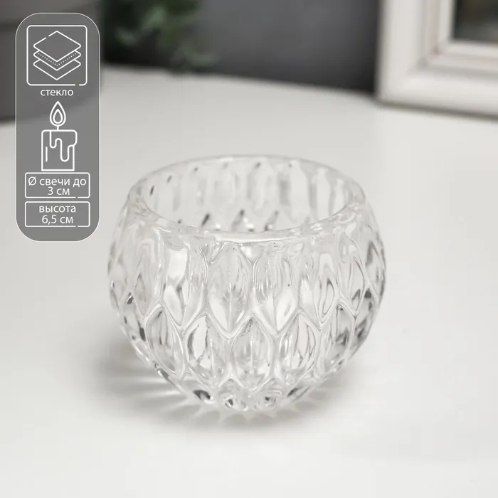 Стеклянный подсвечник на 1 свечу «Ромбы», 7×7×6.5 см — Характеристики