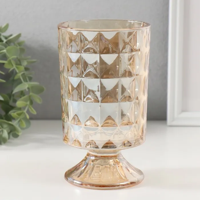 Стеклянный подсвечник на 1 свечу «Ромбы. На ножке», d=9 см, прозрачный, карамель, 10×10×17.5 см — Характеристики