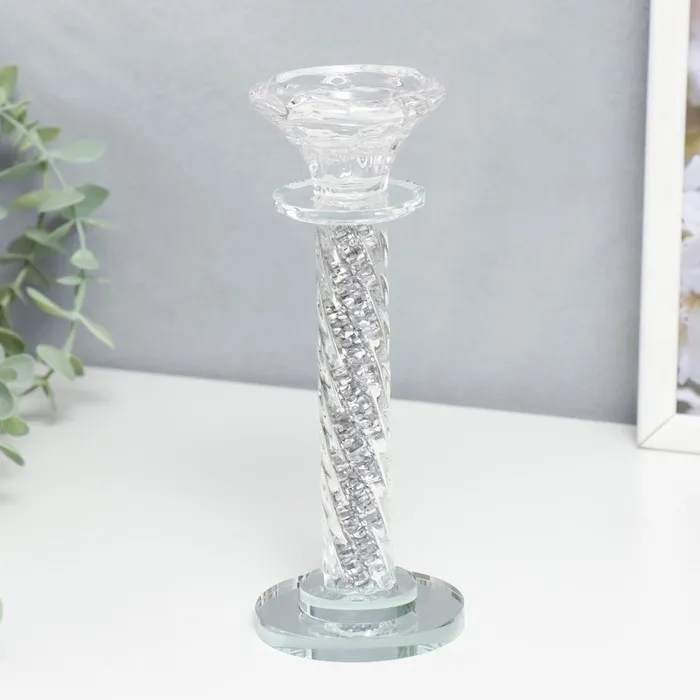 Стеклянный подсвечник на 1 свечу «Спираль с камешками», 18×7×7 см — Характеристики