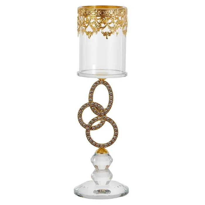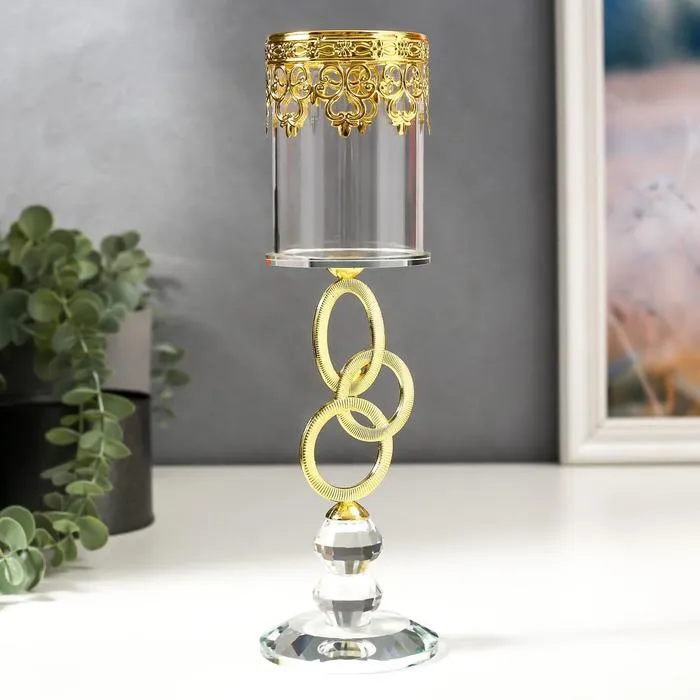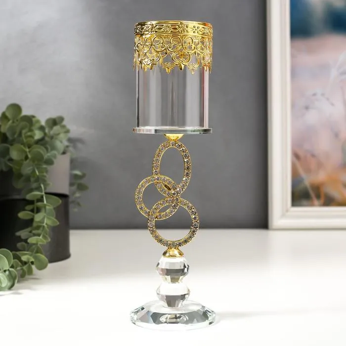 Стеклянный подсвечник на 1 свечу «Сплетение колец и восточный узор», золото, стразы, 25.5×8×8 см — Характеристики