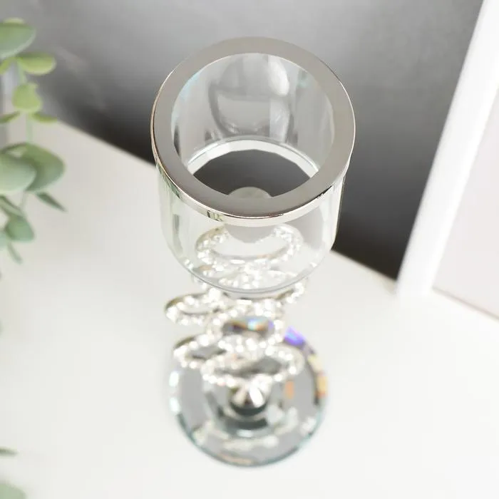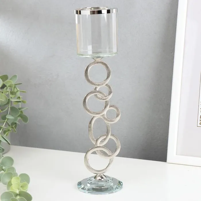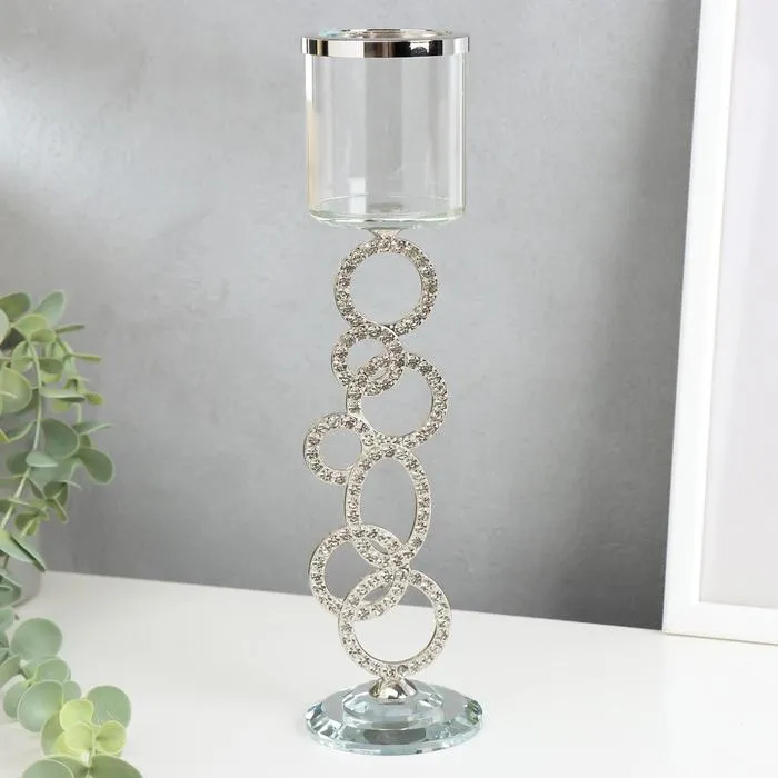 Стеклянный подсвечник на 1 свечу «Сплетение колец», стразы серебро, 27×7×7 см — Характеристики