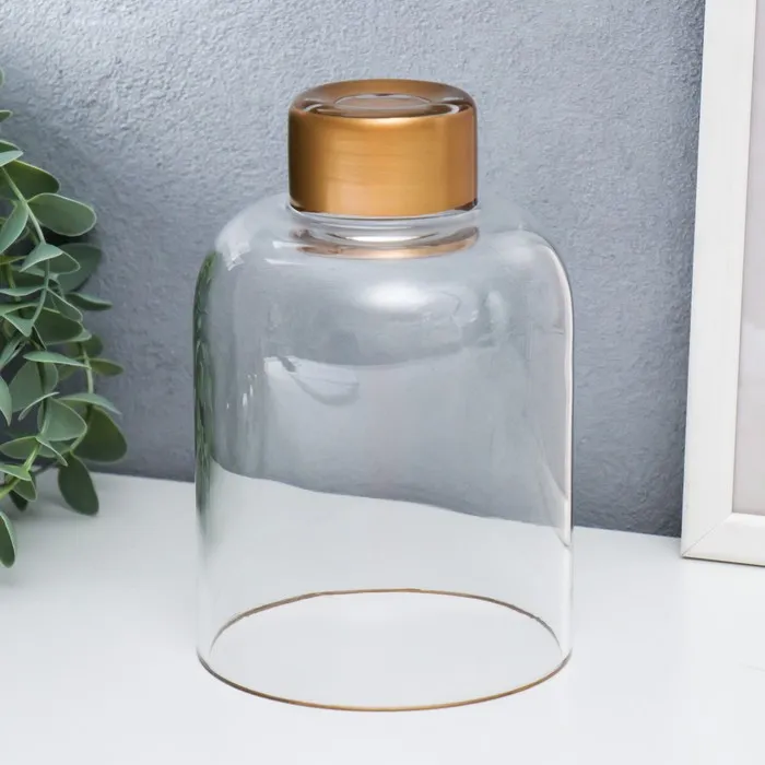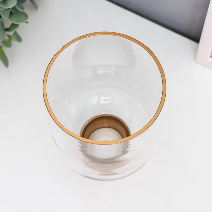 Стеклянный подсвечник на 1 свечу «Стакан на ножке», прозрачный и золото, 15.8×10.5×10.5 см — Характеристики