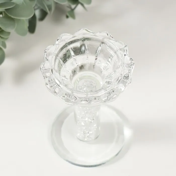 Стеклянный подсвечник на 1 свечу «Цветущий в стразах цветок», d=4 см, 6×6×9.5 см