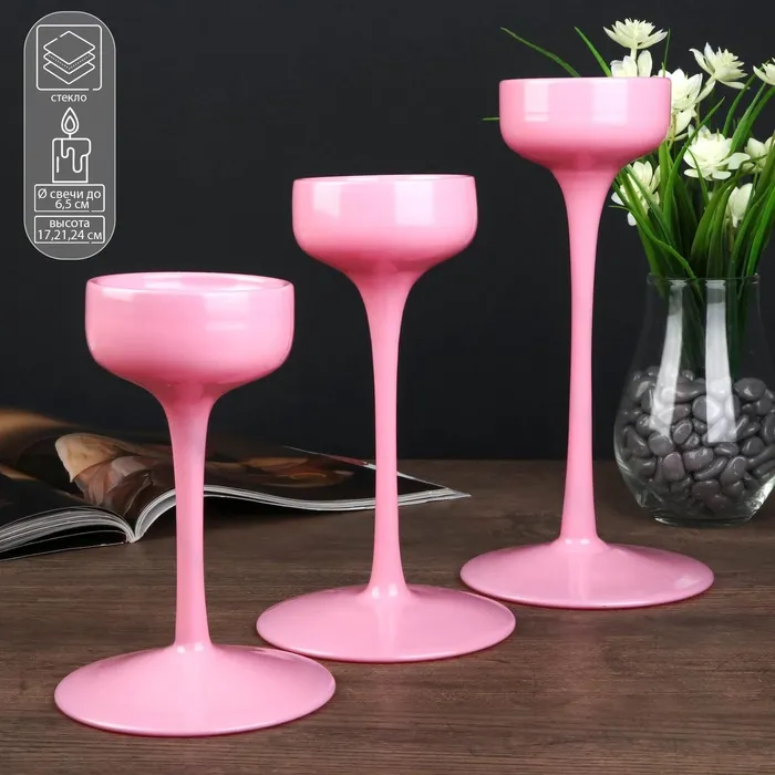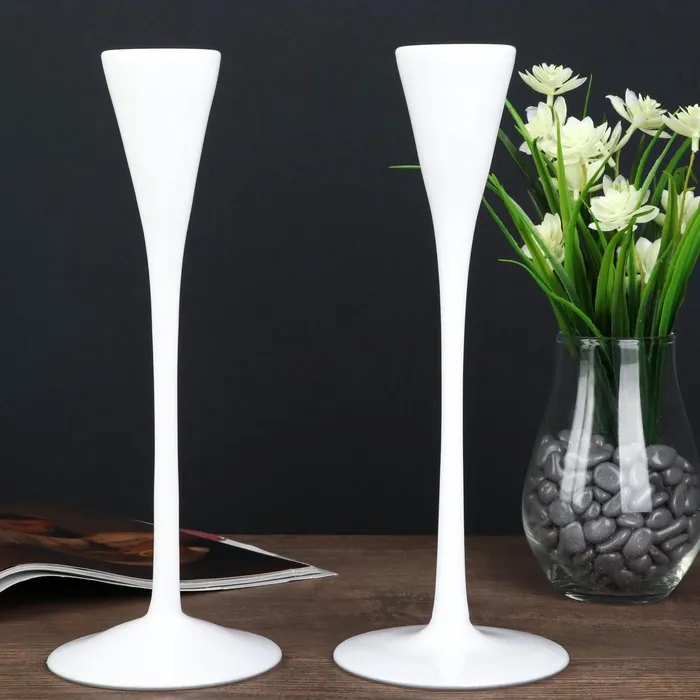 Стеклянный подсвечник на 1 свечу «Узкий бокал», набор 2 шт., белый, 28.5×10.5×10.5 см — Характеристики