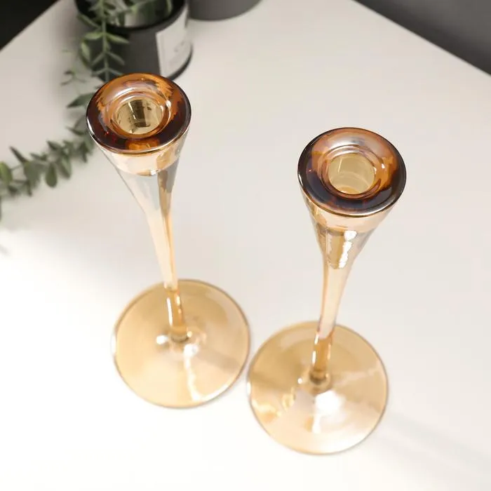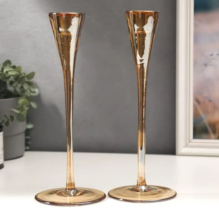 Стеклянный подсвечник на 1 свечу «Узкий бокал», набор 2 шт., золотистая карамель, 28.5×10.5×10.5 см — Характеристики