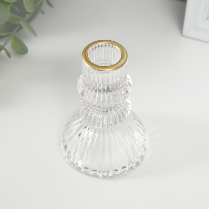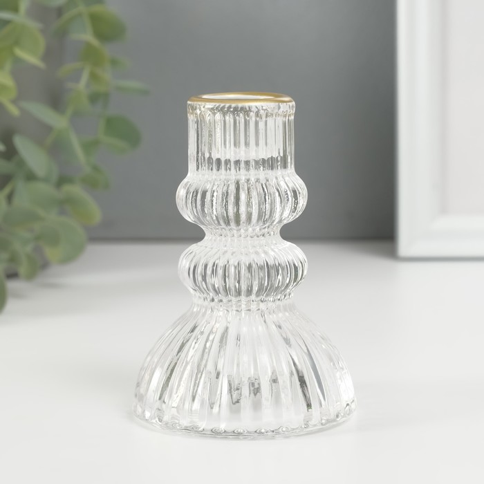 Стеклянный подсвечник на 1 свечу «Водопад. Колонна», с золотом, d=2 см, 7×7×10 см — Характеристики