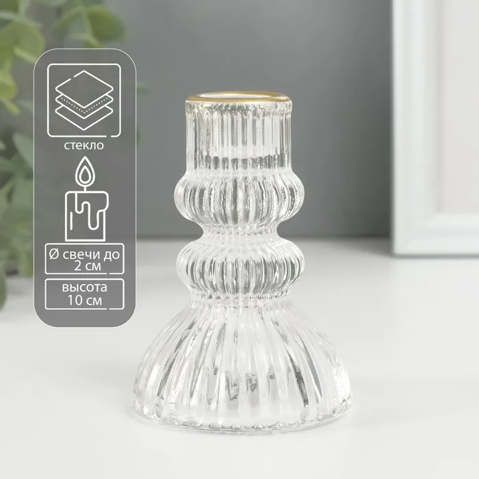 Стеклянный подсвечник на 1 свечу «Водопад. Колонна», с золотом, d=2 см, 7×7×10 см — Характеристики