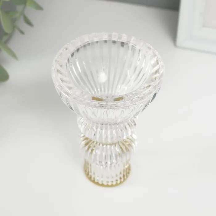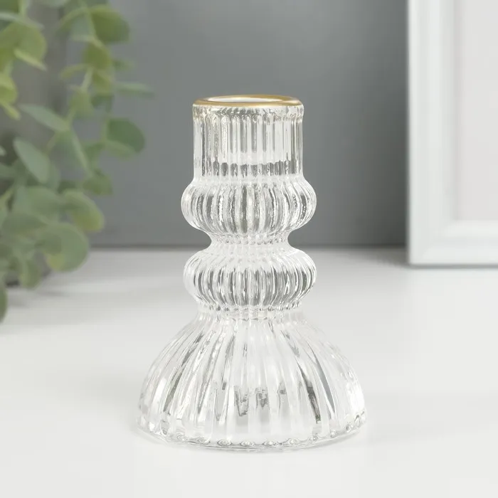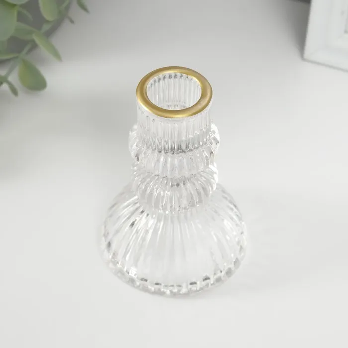 Стеклянный подсвечник на 1 свечу «Водопад. Колонна», с золотом, d=2 см, 7×7×10 см