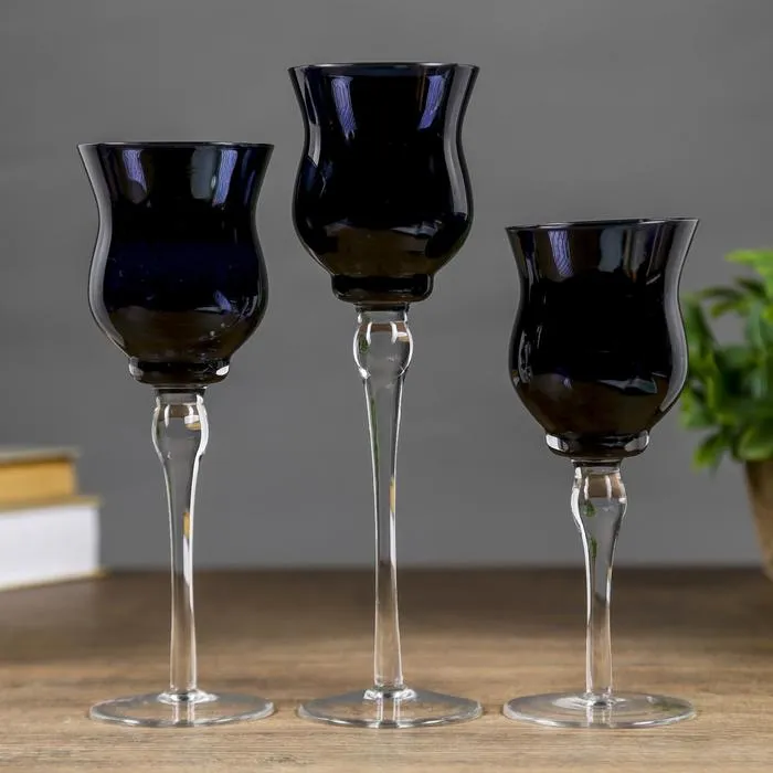 Стеклянный подсвечник на 1 свечу «Вуаль», набор 3 шт., чёрный, h=26см, 23 см, 20 см — Характеристики