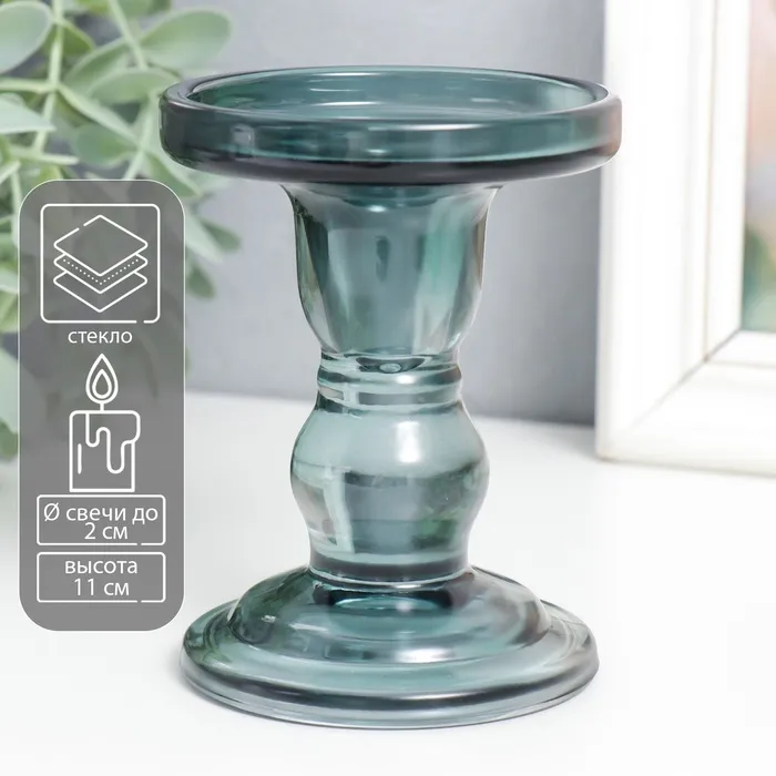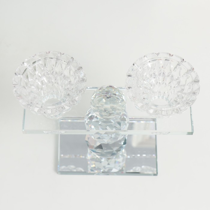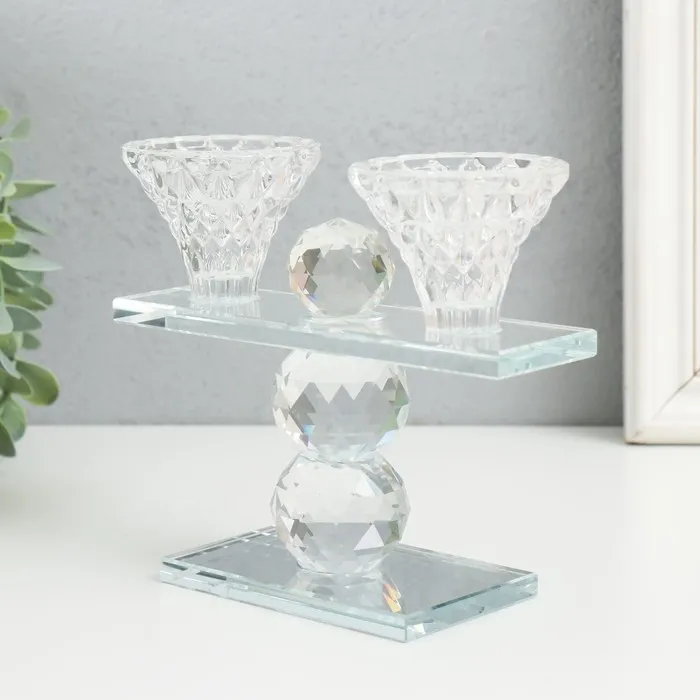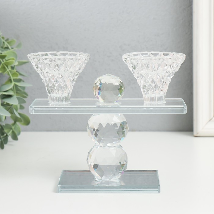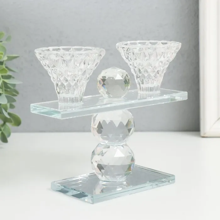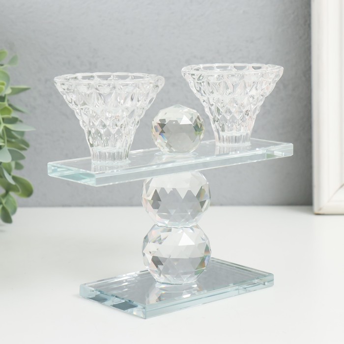 Стеклянный подсвечник на 2 свечи «Две чаши на пьедестале», прозрачный, d=2.3 см и 4 см; 5.5×15×13 см — Характеристики