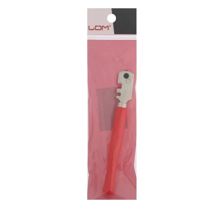 Инструмент используется для раскройки стекла и тонкой керамической плитки. Режущие элементы изготовлены из сплава вольфрама и кобальта. Затупившиеся ролики можно заменить или заточить. Металлическая головка имеет 2 специальных паза, которые захватывают кромку материала при отламывании.