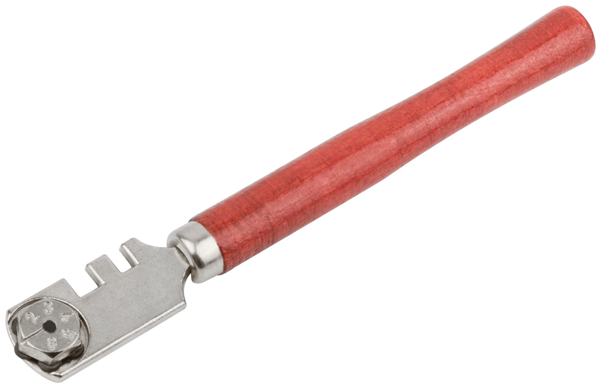 Конструкция стеклореза включает деревянную ручку, обеспечивающую комфортный захват и контроль при работе. Шесть роликов из инструментальной стали гарантируют долговечность и точность резки, минимизируя риск трещин и сколов.