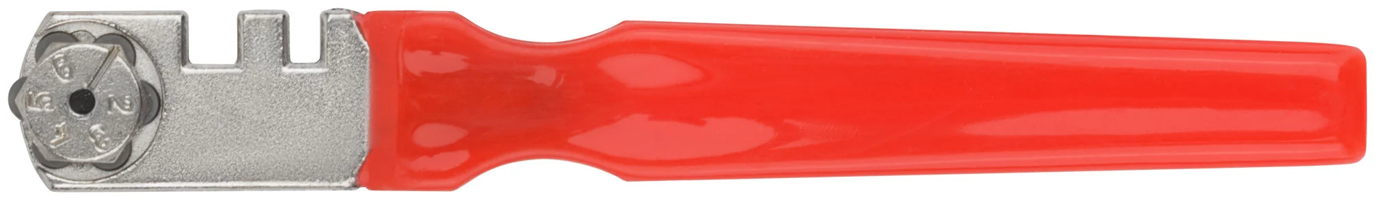 Инструмент оснащен 6 роликами, что обеспечивает длительную эксплуатацию без необходимости частой замены режущих частей. Пластиковая ручка удобна и легка, что уменьшает усталость руки при длительной работе.