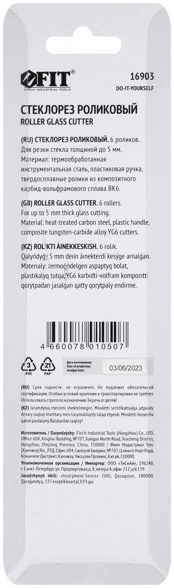 Выберите стеклорез FIT с артикулом 16903, чтобы обеспечить точность и легкость в работе со стеклом.