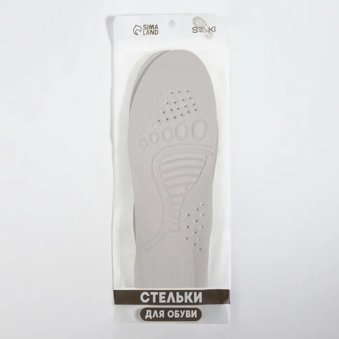 Стельки для обуви, спортивные, универсальные, амортизирующие, дышащие, р-р RU до 46 (р-р Пр-ля до 46), 29 см, пара, серые — Характеристики