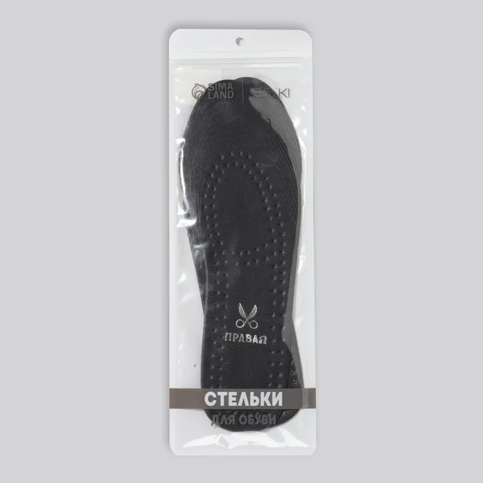 Стельки для обуви, универсальные, дышащие, р-р RU до 44 (р-р Пр-ля до 46), 28 см, пара, чёрный — Характеристики