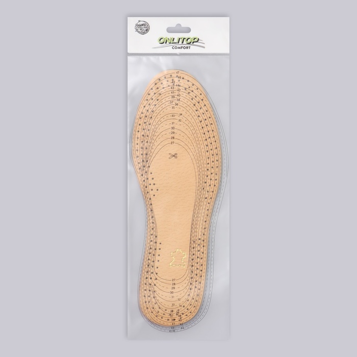 Стельки для обуви, универсальные, кожаные, дышащие, р-р RU до 45 (р-р Пр-ля до 46), 28.5 см, пара, коричневые — Характеристики