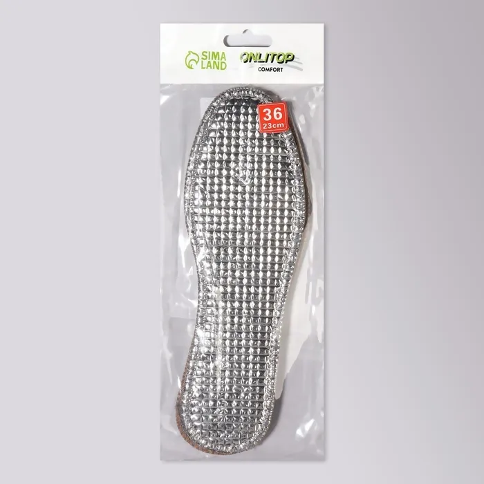 Стельки для обуви, утеплённые, двухслойные, фольгированные, окантовка, р-р RU 34.5 (р-р Пр-ля 36), 23 см, пара, серые — Характеристики