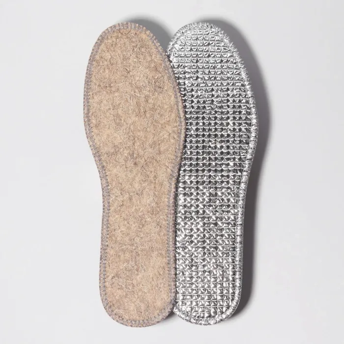 Представленный вариант стелек утеплен: благодаря такой конструкции стельки защитят Ваши ноги от холода и влаги, а верхний шерстяной слой сохранит тепло и обеспечит удобство и мягкость во время ходьбы.