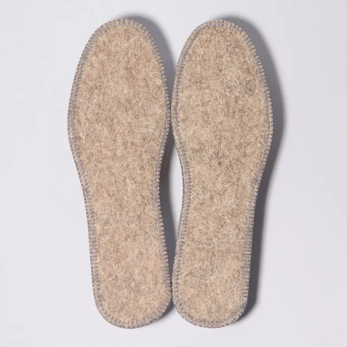 Представленный вариант стелек утеплен: благодаря такой конструкции стельки защитят Ваши ноги от холода и влаги, а верхний шерстяной слой сохранит тепло и обеспечит удобство и мягкость во время ходьбы.