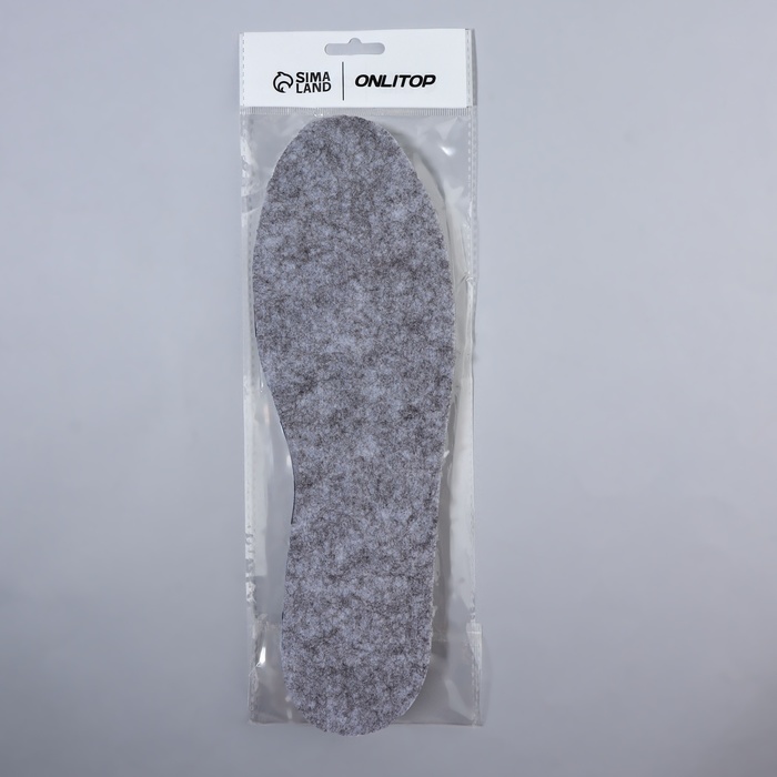 Стельки для обуви, утеплённые, двухслойные, универсальные, р-р RU до 47 (р-р Пр-ля до 46), 29.5 см, пара, серые — Характеристики