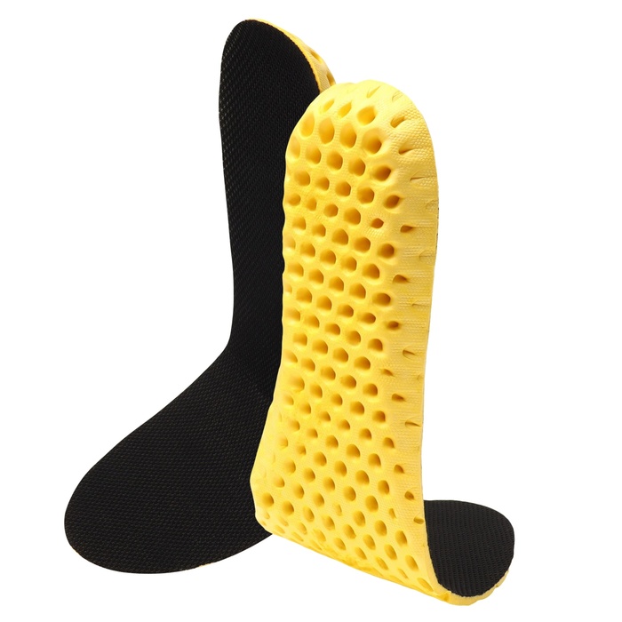 Амортизирующая полимерная основа обеспечивает комфорт стопы в обуви, поддерживает пятку, снимает нагрузку с суставов во время ходьбы и бега. Это делает стельки удобными для занятий спортом и при повседневной большой нагрузке на ноги.