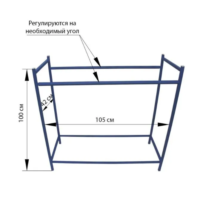 Габариты стеллажа: ширина 1050 мм, глубина – 420 мм, высота – 1000 мм. Компактные размеры стеллажа позволяют хранить комплект колес, в малогабаритных помещениях, например, на балконе, лоджии, в углу гаража и т.д.