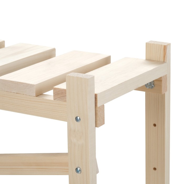 На стеллаже с легкостью поместятся все банные принадлежности, инструменты, детские игрушки, цветы или банки с заготовками. Изделие можно покрасить или декорировать на ваш вкус.