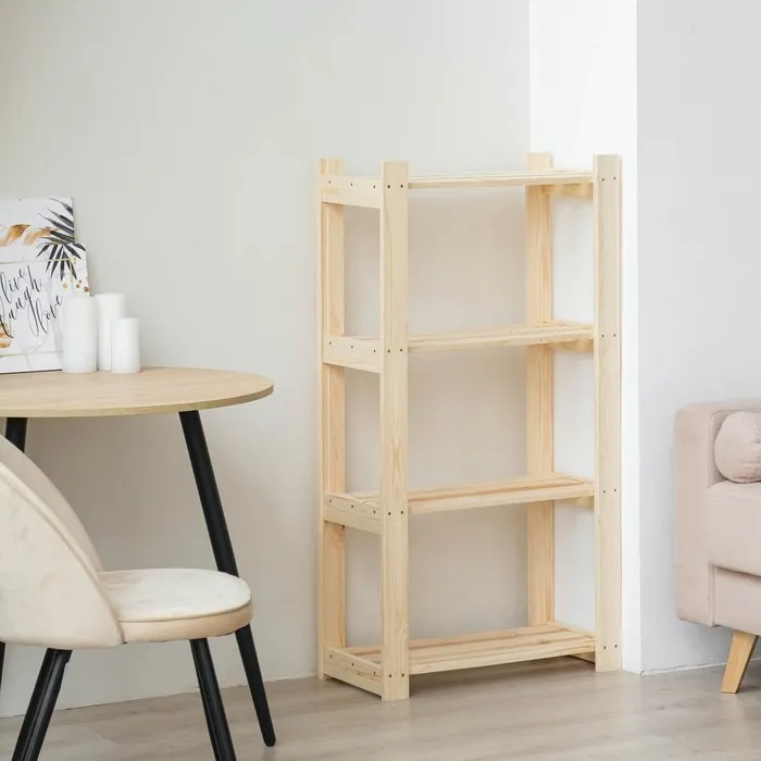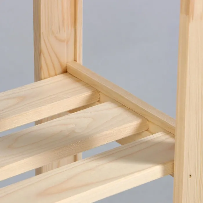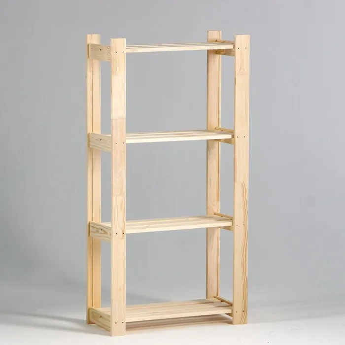 Открытый компактный стеллаж, сделанный из массива хвои, самый бюджетный в нашей серии. Он станет полезной частью гостиной, спальни, детской комнаты, квартиры-студии или офисных помещений.