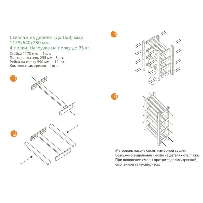 Стеллаж деревянный 4 полки 117,8 х 64 х 28 см "Альфа 117" — Характеристики
