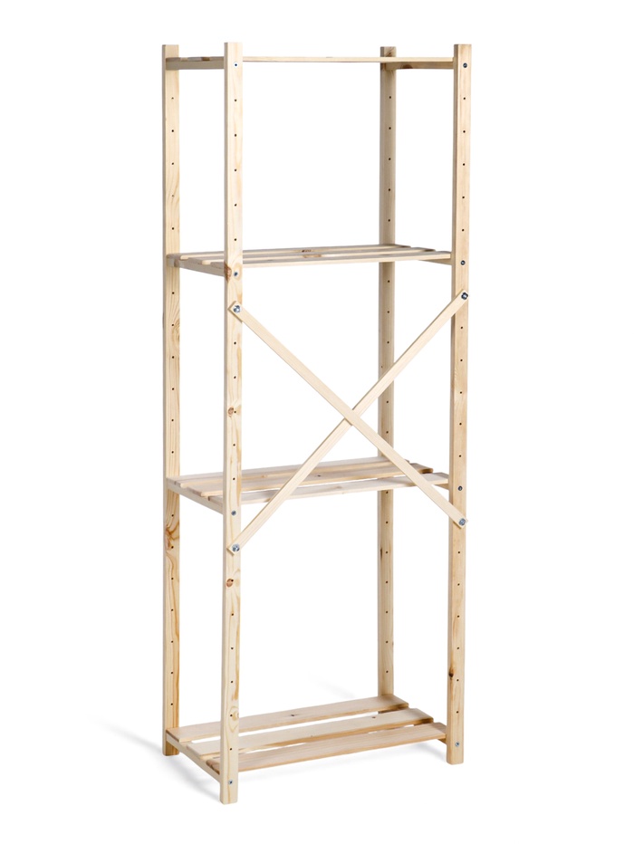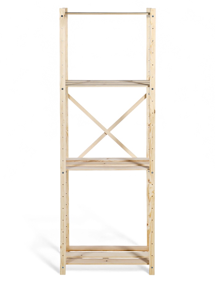 Стеллаж деревянный, 4 полки, 140×50×28 см, напольный, с регулируемыми полками — Характеристики