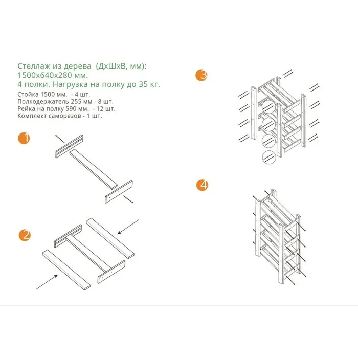 Стеллаж деревянный 4 полки 150 х 64 х 27,5 см, 2 сорт — Характеристики