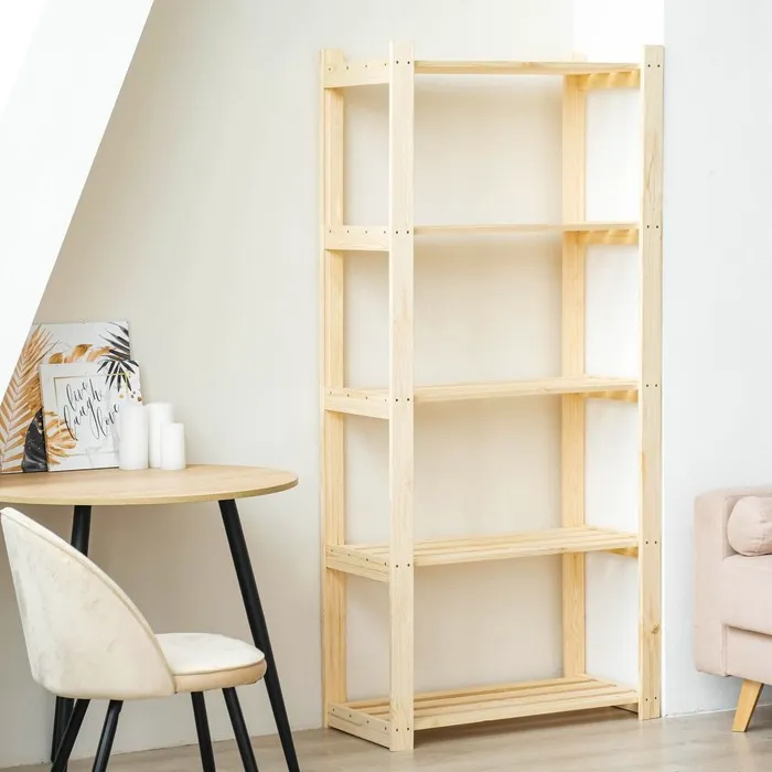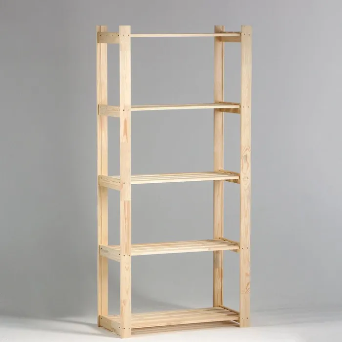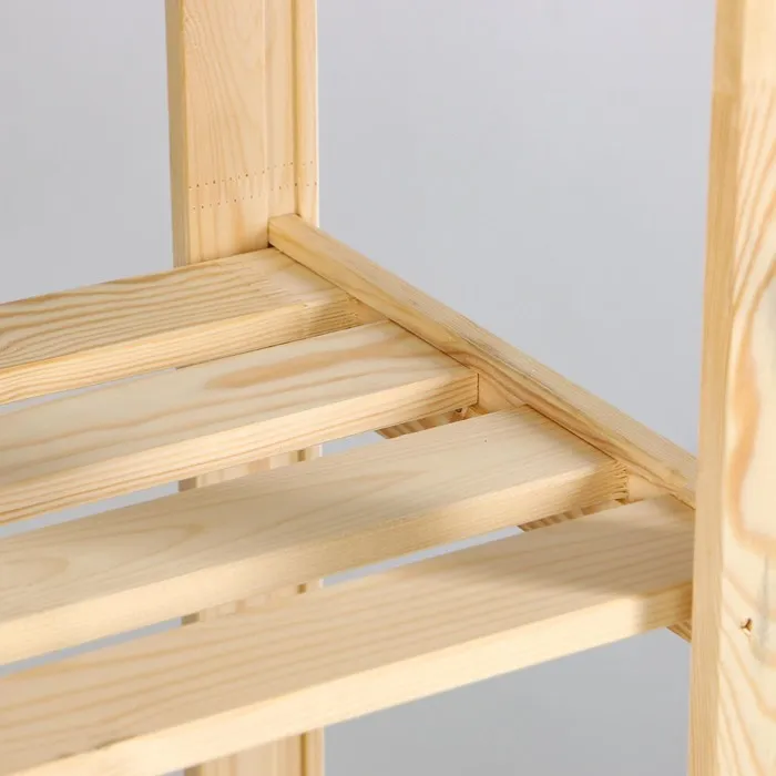 Открытый компактный стеллаж, сделанный из массива хвои, самый бюджетный в нашей серии. Он станет полезной частью гостиной, спальни, детской комнаты, квартиры-студии или офисных помещений.