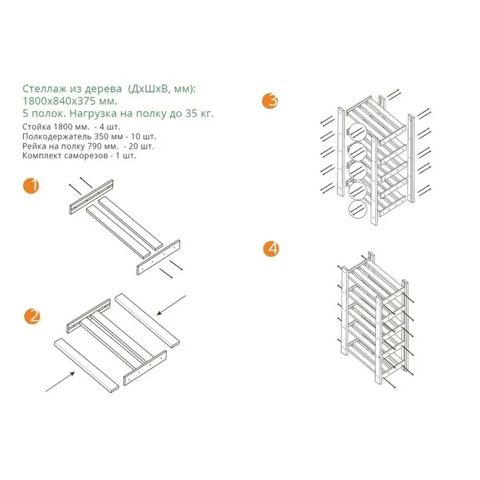 Стеллаж деревянный 5 полок 170 х 74 х 37,5 см, УСИЛЕННЫЙ — Характеристики