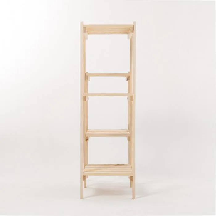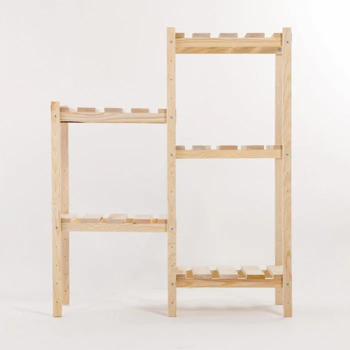 На стеллаже с легкостью поместятся все банные принадлежности, инструменты, детские игрушки, цветы или банки с заготовками. Изделие можно покрасить или декорировать на ваш вкус.