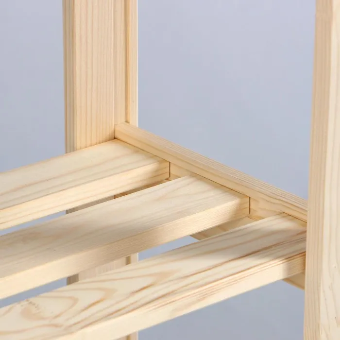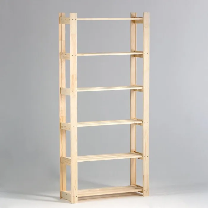 Открытый компактный стеллаж, сделанный из массива хвои, самый бюджетный в нашей серии. Он станет полезной частью гостиной, спальни, детской комнаты, квартиры-студии или офисных помещений.