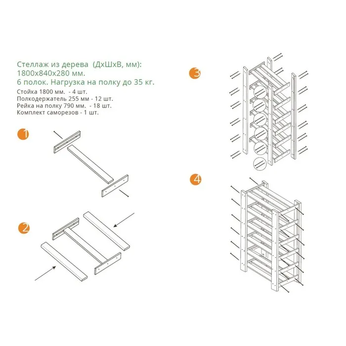 Стеллаж деревянный 6 полок 170 х 84 х 28 см, УСИЛЕННЫЙ — Характеристики