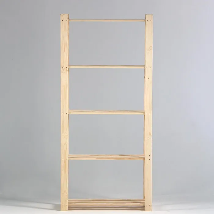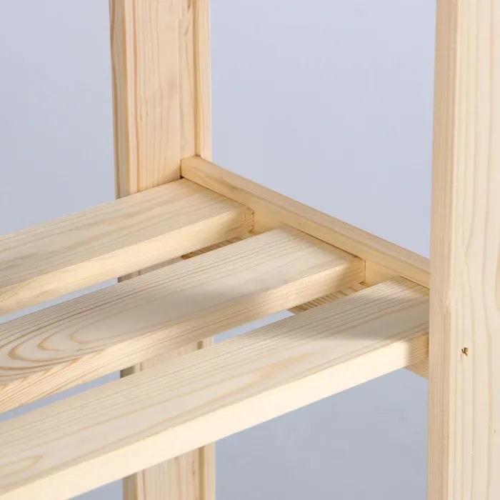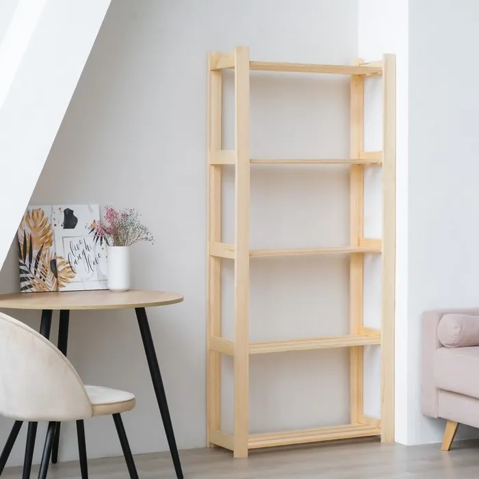 Открытый компактный стеллаж, сделанный из массива хвои, самый бюджетный в нашей серии. Он станет полезной частью гостиной, спальни, детской комнаты, квартиры-студии или офисных помещений.