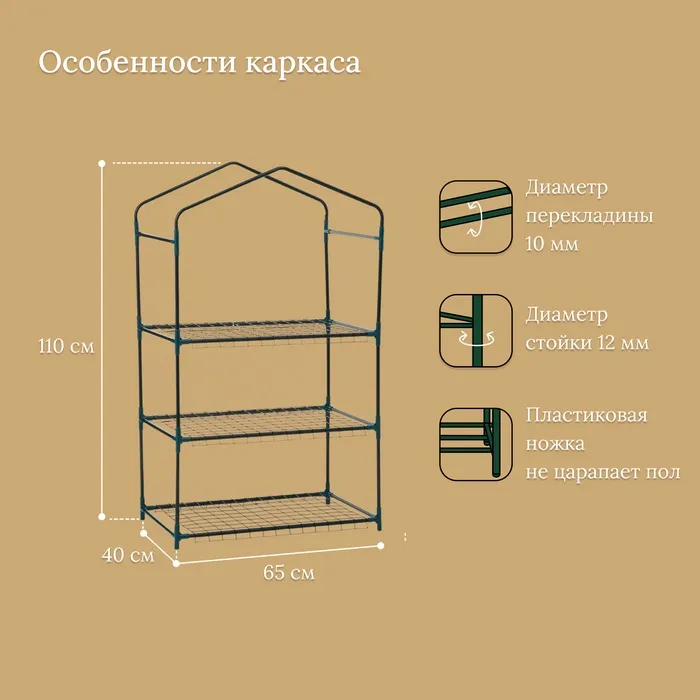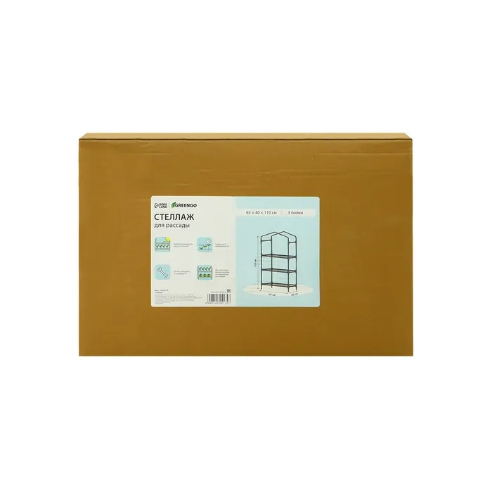 Стеллаж для рассады, 3 полки, 110×40×65 см, металлический каркас d=12 мм, без чехла, Greengo — Характеристики